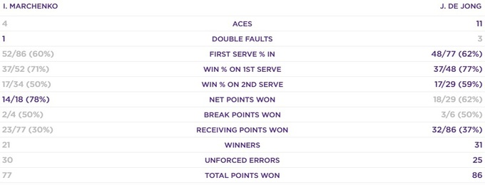 Илья Марченко (Украина) – Йеспер де Йонг (Нидерланды) – 7:5, 0:6, 6:4