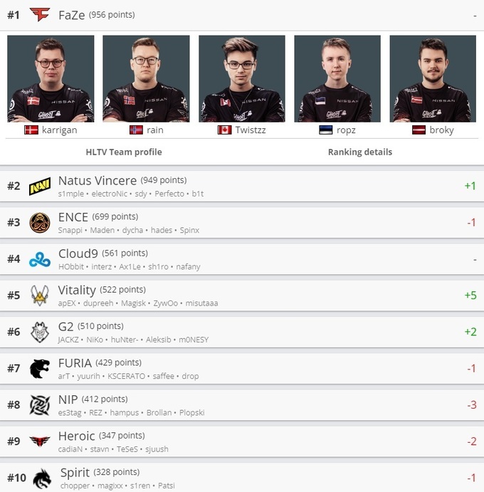 NAVI обошли ENCE и впритык приблизились к FaZe Clan. От лидера s1mple и компания отстает на 7 очков.