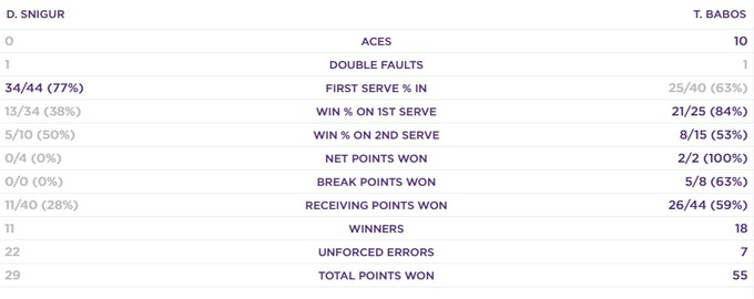 Дарья Снигур (Украина) – Тимеа Бабош (Венгрия) – 0:6, 2:6