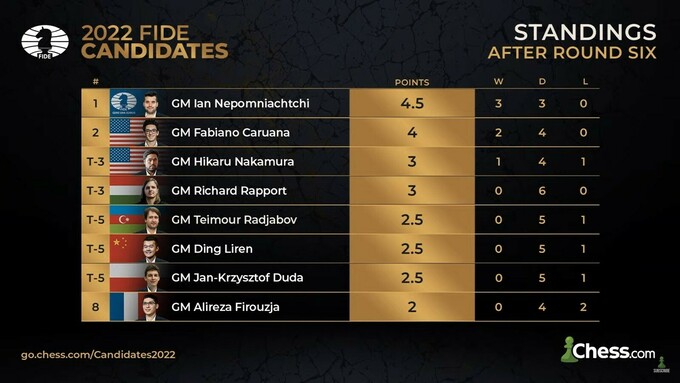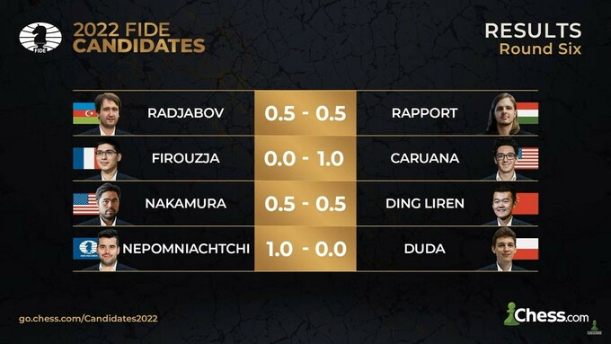 Гонка на двоих. Непомнящий и Каруана выиграли свои партии в 6-м туре