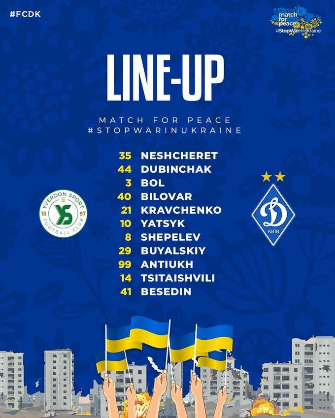 Состав на контрольный матч: Нещерет – Кравченко, Боль, Биловар, Дубинчак – Яцык, Шепелев, Буяльский (к), Цитаишвили, Антюх – Беседин.