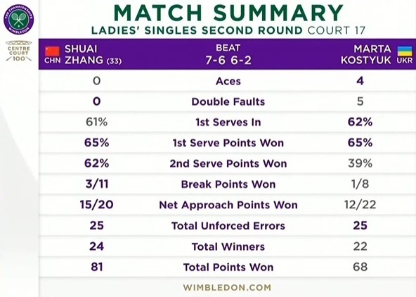 Это была третья встреча теннисисток, Костюк впервые проиграла. В прошлом году Марта также покинула турнир после второго круга.