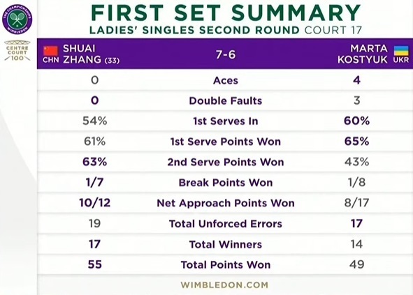 Марта Костюк (Украина) – Чжан Шуай (Китай) – 6:7(6), 2:6
