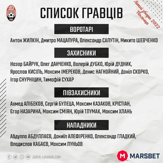 «Заря» сегодня прибыла в Польшу, где команда планирует готовиться к матчам квалификации Лиги конференций. Пока в составе 27 футболистов.