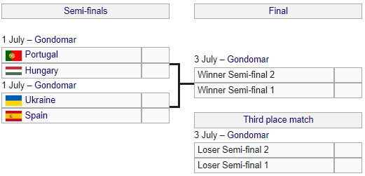 Финал четырех чемпионата Европы состоится 1–3 июля в Гондомаре (Португалия).