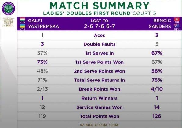 Даяна Ястремская / Далма Галфи – Белинда Бенчич / Сторм Сандерс – 2:6, 7:6(7), 6:7(16)