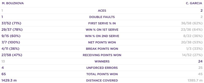 Мария Боузкова (Чехия) – Каролин Гарсия (Франция) – 7:5, 6:2