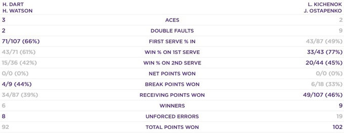 Людмила Киченок / Алена Остапенко – Хэрриет Дарт / Хезер Уотсон – 5:7, 6:4, 6:2