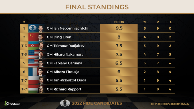 Итоги Турнира претендентов. В последнем туре второе место отвоевал китаец