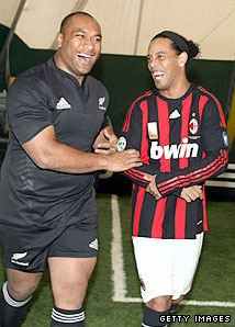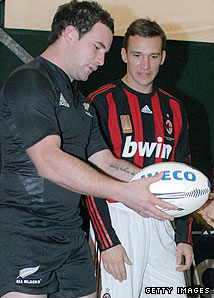 Новозеландец Дэн Картер показывал бразильцу Каке технику удара по овальному регбийному мячу, огромный новозеландец Маа Нону с трудом нашел футболку которая налезла на его богатырскую грудь, а Андрей Шевченко даже поучаствовал в регбийной схватке. Было много смеха, обмена автографами, футболками и регбийками.