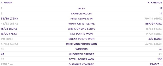 Ник Кирьос (Австралия) – Кристиан Гарин (Чили) – 6:4, 6:3, 7:6(5)
