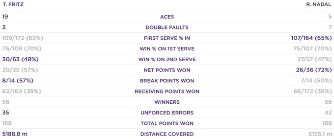 Рафаэль Надаль (Испания) – Тэйлор Фриц (США) – 3:6, 7:5, 3:6, 7:5, 7:6(4)