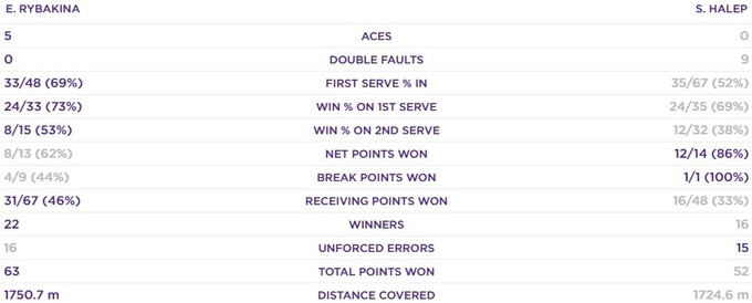 Симона Халеп (Румыния) – Елена Рыбакина (Казахстан) – 3:6, 3:6