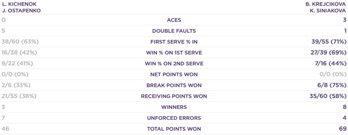 В полуфинале в дуэте с Аленой Остапенко из Латвии украинка проиграла второму сеяному тандему Барбора Крейчикова / Катерина Синякова (Чехия).