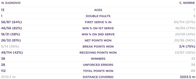 Новак Джокович (Сербия) – Кэмерон Норри (Великобритания) – 2:6, 6:3, 6:2, 6:4