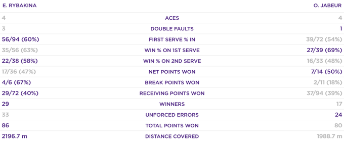 Елена Рыбакина (Казахстан) – Онс Жабер (Тунис) – 3:6, 6:2, 6:2