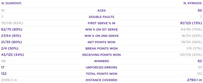 Джокович впервые обыграл Кирьоса, до этого у серба было два поражения в очных встречах.