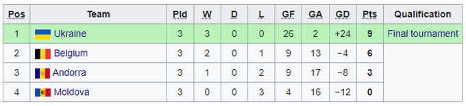 Ранее сине-желтые разгромили команду Андорры со счетом 10:2, а затем уничтожили Бельгию (11:0).