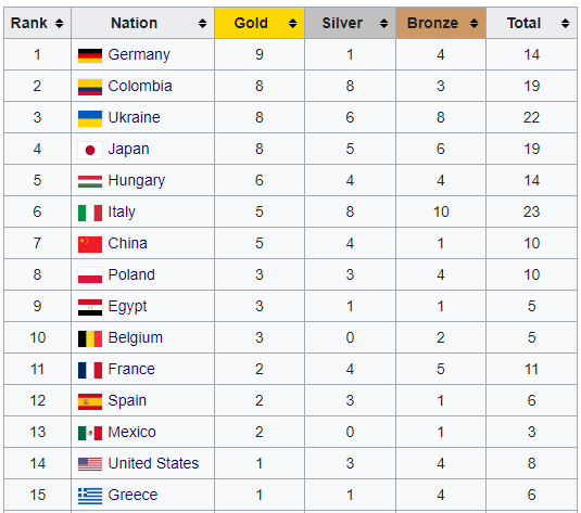 Таким образом, за три соревновательных дня в активе сборной Украины уже 22 награды (8–6–8). Украинская команда занимает третье место в медальном зачете Всемирных игр 2022.