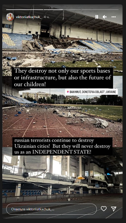 Украинская легкоатлетка Виктория Ткачук, которая представляет на соревнованиях город Бахмут, отреагировала на обстрел орками стадиона в ее родном городе: