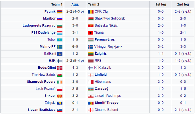 Сенсационно прошел дальше армянский «Пюник», обыграв по пенальти румынский ЧФР Клуж (2:2 пен. 4:3). За победителей 90 минут отыграл украинец Сергей Вакуленко, а перед дополнительным временем был заменен. Пропустив гол, клуб из Армении сумел сравнять счет на 119-й минуте и затем выиграть серию пенальти.