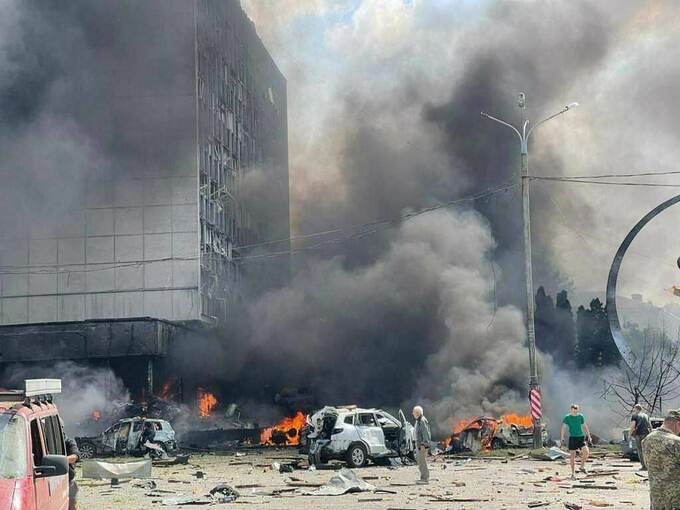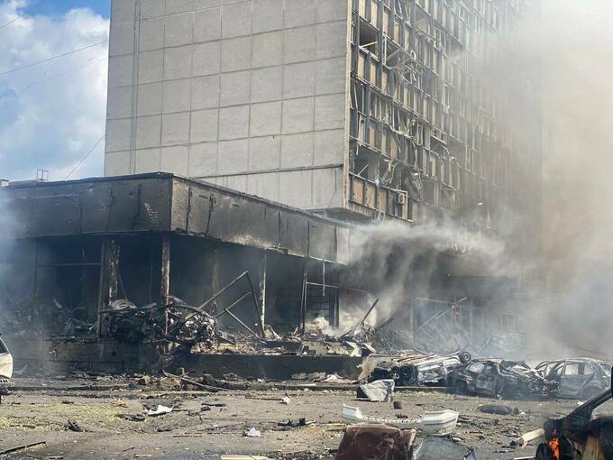 По предварительным данным, 3 российские ракеты попали в здание с офисными помещениями. От ударов пострадали также Дом офицеров и расположенные неподалеку жилые дома.