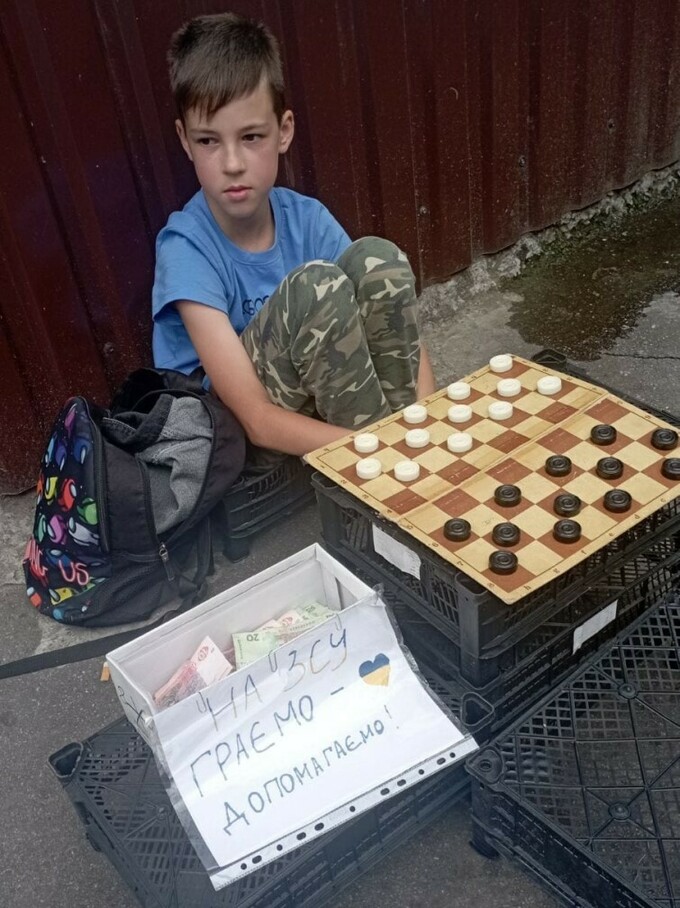 10-летний чемпион Киева по шашкам собирает деньги для ВСУ игрой на улице
