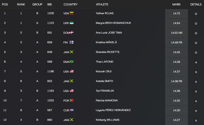 Украинка Марина Бех-Романчук в тройном прыжке успешно прошла квалификацию ЧМ-2022 со 2-м результатом (14.54 м). Впереди оказалась только фаворит соревнований Юлимар Рохас из Венесуэлы.