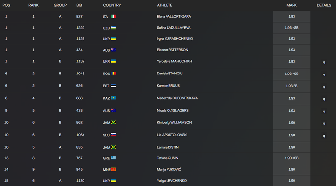 В секторе для прыжков в высоту украинки Ярослава Магучих и Ирина Геращенко успешно выполнили первое задание, взяв необходимую для квалификации высоту 1.93 м. А вот Юлия Левченко остановилась на отметке 1.90 м и в финал не попала.