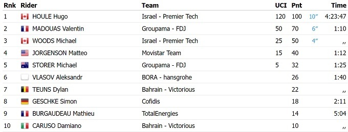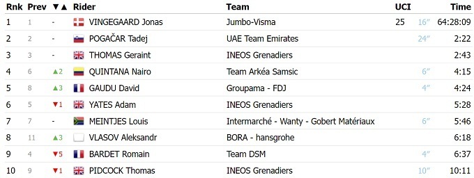 Лидерство в общем зачете сохранил датчанин Йонас Вингегор из «Jumbo Visma».