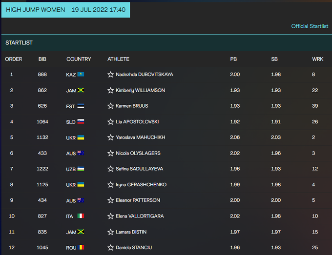Финал в прыжках в высоту у женщин начинается 20 июля в 03:40