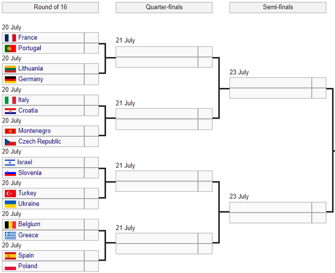 20 июля в Подгорице (Черногория) проходят матчи 1/8 финала чемпионата Европы U-20 по баскетболу (Дивизион A).