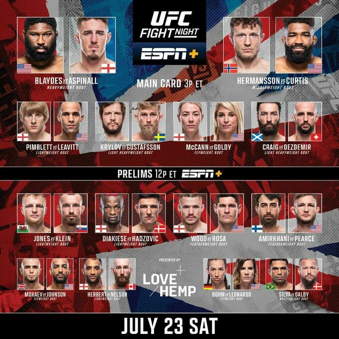 Вечером 23 июля в Лондоне проходит турнир по смешанным единоборствам UFC Fight Night 208.