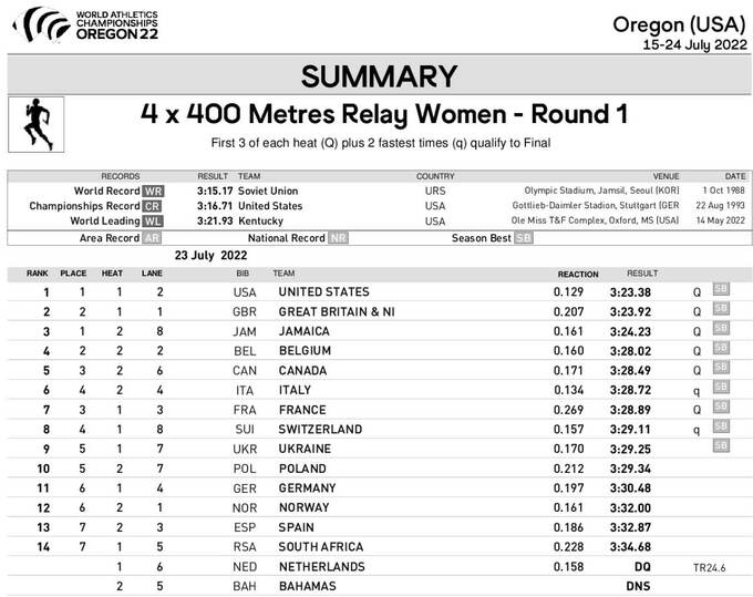 Украинская команда в составе Катерины Капрук, Анастасии Брызгиной, Виктории Ткачук и Анны Рыжиковой не смогла выйти в финал эстафеты 4х400 метров на чемпионате мира по легкой атлетике в Орегоне (США)..