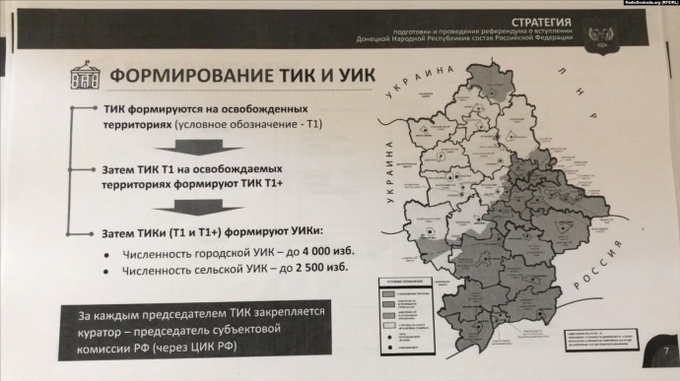 В документе расписаны несколько этапов так называемой PR-кампании, однако даты псевдореферендума нет. По информации источника, один из вариантов, который рассматривает россия – 11 сентября. В стратегии указано, какими количественно должны быть явка и поддержка, чтобы вписаться в 70%.