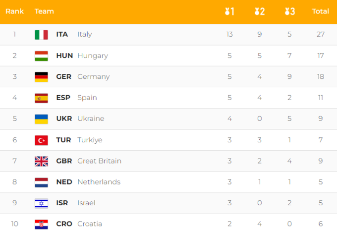У сине-желтых в активе 9 медалей (4 золотых и 5 бронзовых), и это 5-е место в медальном зачете ЕЮОФ.