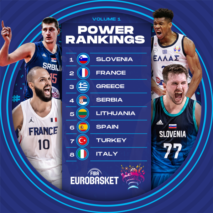 За месяц до начала чемпионата Европы среди национальных мужских команд сайт ФИБА опубликовал свой первый рейтинг силы сборных Евробаскета-2022.