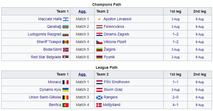 2 августа состоялись первые матчи квалификации Q3 Лиги чемпионов