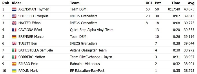 Голландский велогонщик команды DSM Таймен Аренсман стал победителем шестого этапа Тура Польши-2022 – горной разделки на 11,8 км. Он опередил двух гонщиков «Ineos Grenadiers» - Магнуса Шеффилда и Итана Хейтера. Именно Хейтер перехватил лидерство в общем зачете.