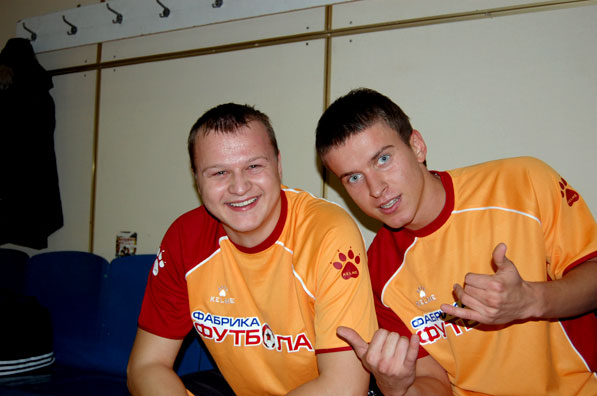 Минутой ранее Дмитрий Поворознюк подал угловой, а Богдан Буга замкнул передачу партнера пахом. Через минуту ребята снова друзья! Вот что значит журналистская солидарность!