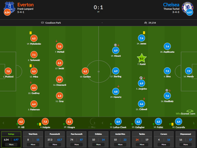 Миколенко получил средние оценки за игру: 6.5 от WhoScored и 6.8 от SofaScore. Самый высокий бал WhoScored поставил хавбеку синих Н'Голо Канте (8.0)
