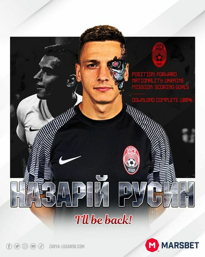 Назарий уже выступал в составе «Зари», поэтому клуб его представил в роли Терминатора с известной фразой I'll be back.