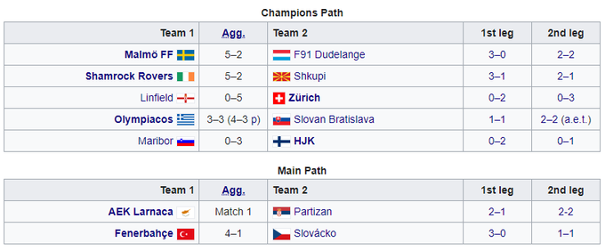 Турецкий «Фенербахче», который ранее выбыл из Лиги чемпионов из-за поражения от киевского «Динамо», прошел барьер в виде команды «Словацко» из Чехии (3:0, 1:1).