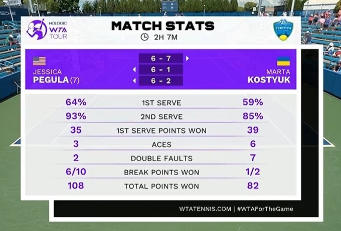 Марта Костюк (Украина) – Джессика Пегула (США) – 7:6(5), 1:6, 2:6