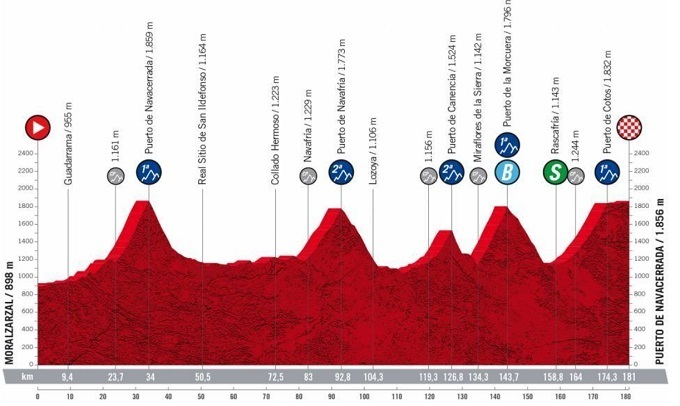 Финиш – на Пуэрто де Навасеррада в окрестностях Мадрида, при чем этот перевал будут проходить и в начале этапа. При этом финишная развязка – это подъем первой категории Пуэрто де Котос (10,3 км, 6,9%), после которого – 7 равнинным километров по плоскогорью до финиша на самой Навасерраде.