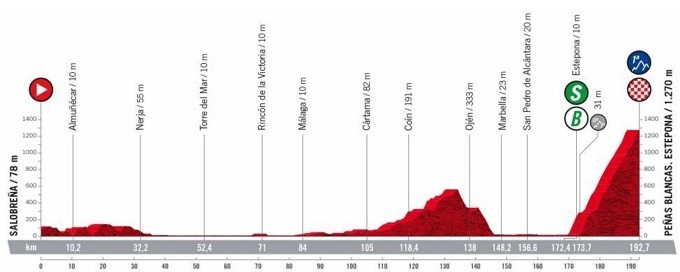 В первый день осени – еще одно тяжелое горное испытание. Большая часть из 193-километровой дистанции будет проходить вдоль морского побережья и будет абсолютно равнинной. Однако за 20 км до финиша гонщики повернут вглубь континента и начнут финальный подъем на Эстепону.