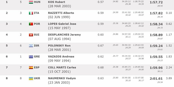 Вадим Науменко стал восьмым с результатом 2:01,61 в финале 200 метров комплексом.