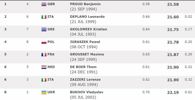 Владислав Бухов занял 8-е место в финале на дистанции 50 метров вольным стилем. Его результат – 22,19 секунды.