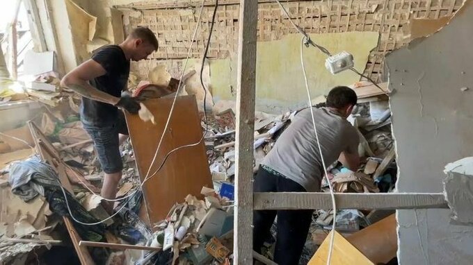 Пид***** ху***т по мирным жителям. Рассказывают, что какие-то военные объекты. Какие? Общежитие? Военный объект? Жаль всех. Жаль тех, кого еще не нашли. Надо держаться и давать им звездюлей.