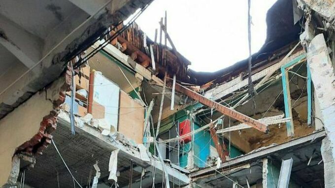 В Слободском районе Харькова одна из ракет попала в 4-этажное помещение общежития. Здание частично разрушено. По состоянию на данный момент 2 человека погибли, 18 получили ранения, в том числе 2 ребенка».